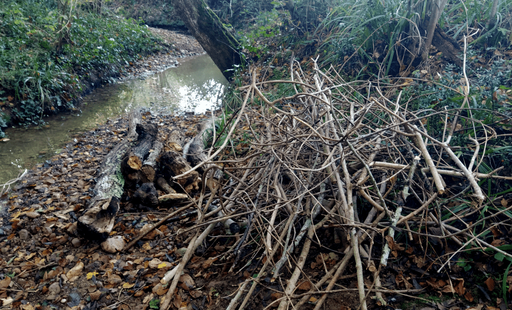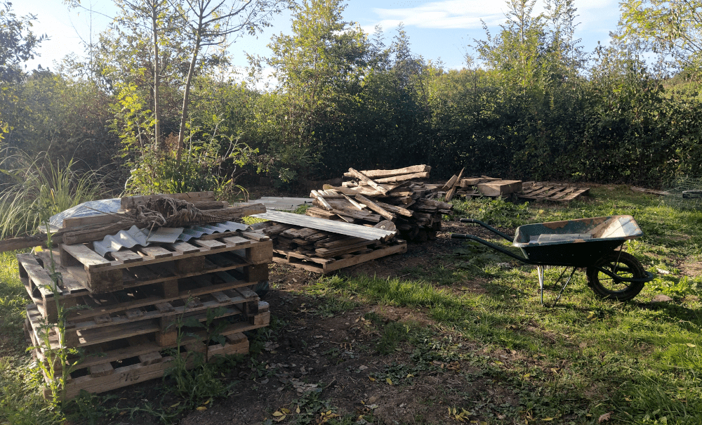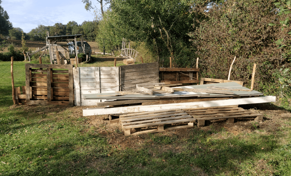 Ensuite, on continue les travaux divers et autres rangements. Parmi eux, on mentionnera le rangement du tas de bois derrière la barrière. On poursuit également le chantier « source » dans le bois, mais on garde les détails pour un futur article.