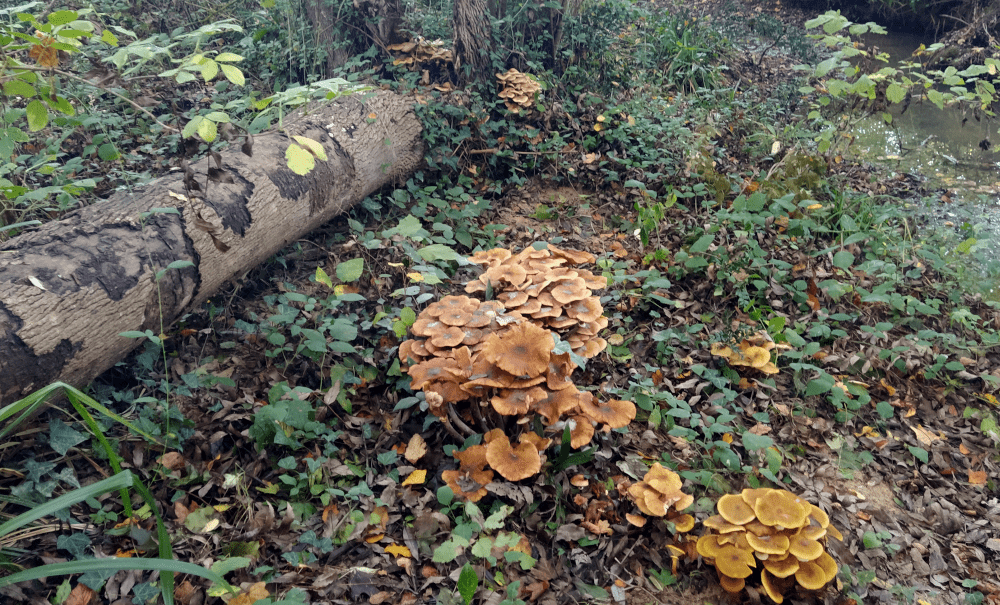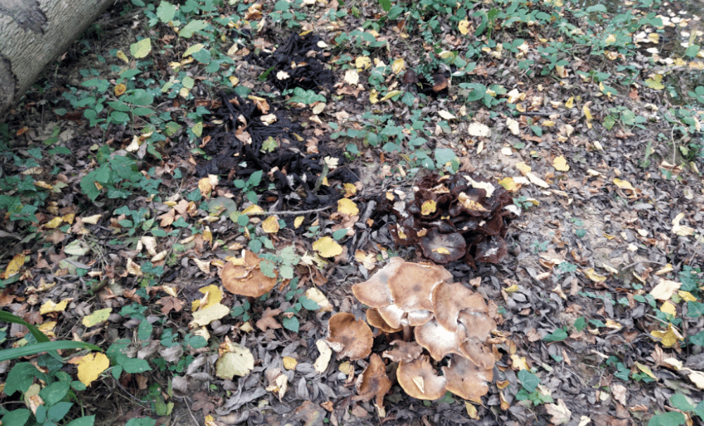 Tout d’abord, les shiitakés continuent d’apparaître avec une parcimonie constante. Mais leur nombre paraît ridicule face à l’armillaire couleur de miel. Ce champignon mériterait un article à lui tout seul et heureusement quelqu’un l’a fait : Armillaria mellea ou champignon de miel sur NaturNext.