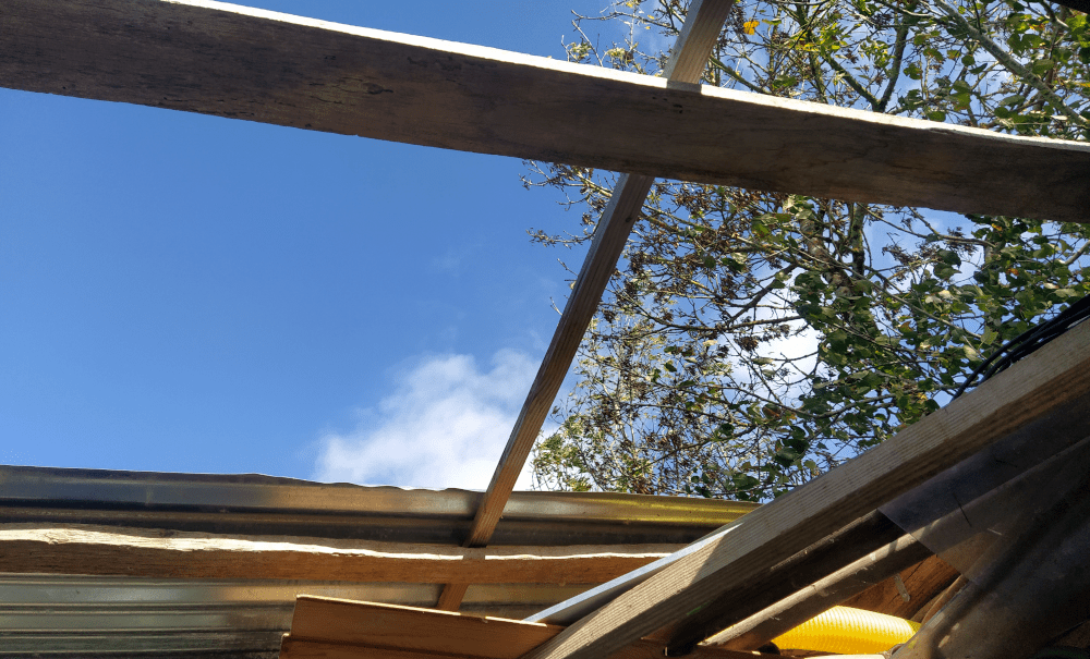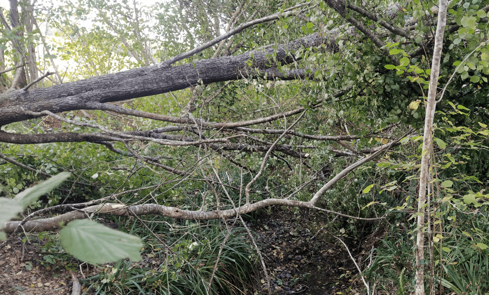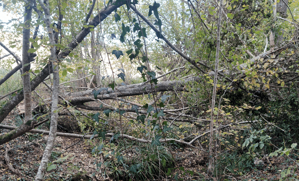 Avec la tempête Benjamin, quelques tôles se sont envolées et des arbres sont tombés. Une mention spéciale à l’arbre de la rive voisine (rescapé d’un débroussaillage-élagage excessif et la mise en place d’un énorme drain), qui perd des branches de la taille d’un tronc. C’est dommage parce qu’il fixe la berge (mais pour combien de temps?).