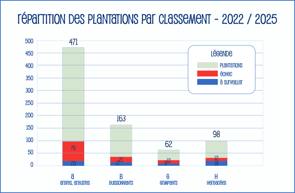 Pour ce bilan 2025 des plantations effectuées depuis 2022, on a recensé 794 végétaux.