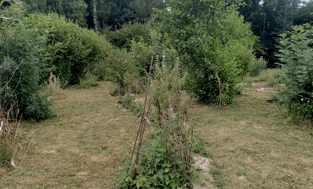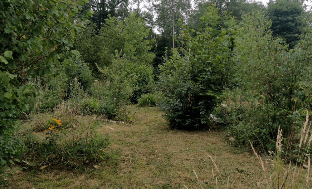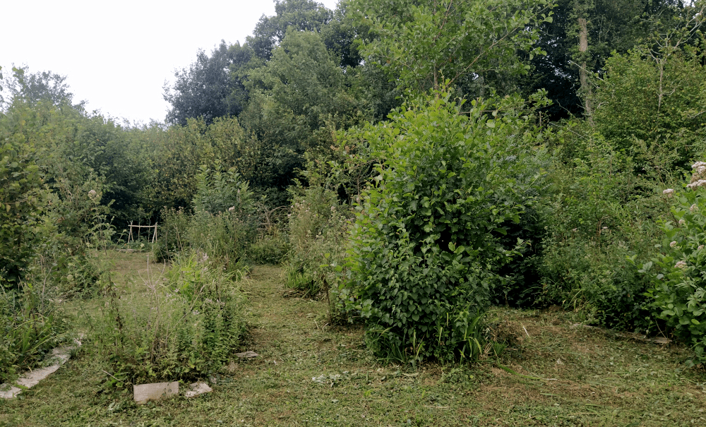 Il y a quand même un avantage avec cette sécheresse, c’est que l’effet débroussailleuse dure plus longtemps. Aussi on en profite, et cette fois ce sera en zone sauvage puis en zone prairie (où on dessine les cheminements des futures clairières).