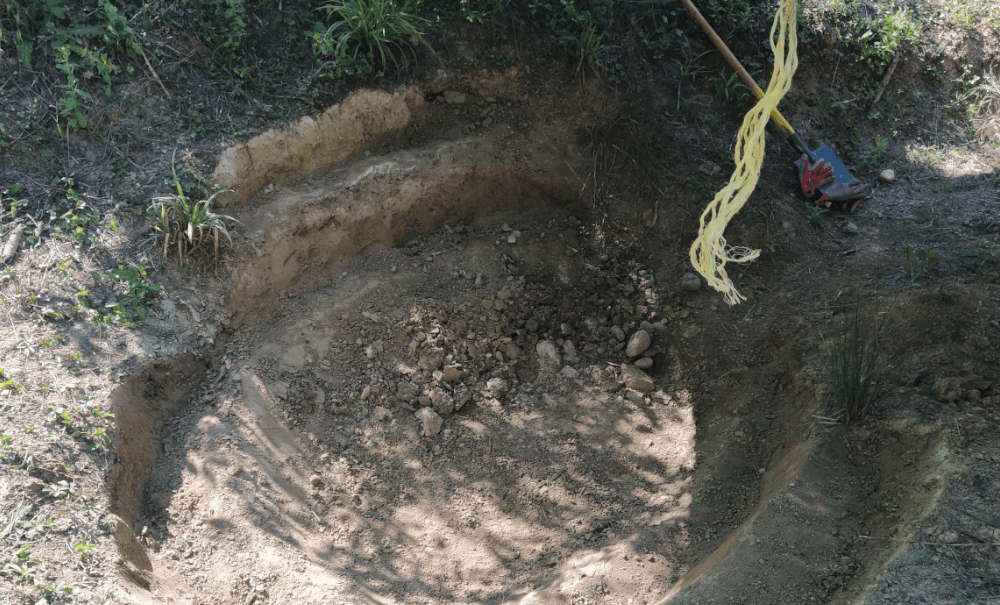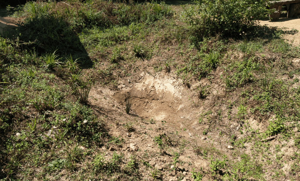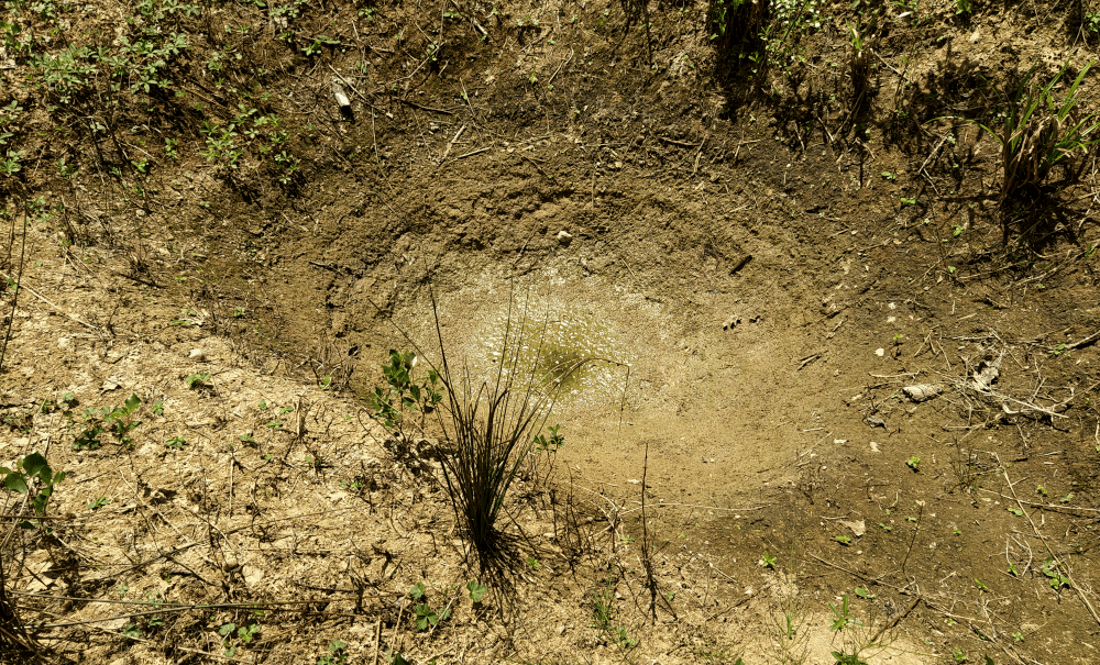 On peut constater que le trou (entièrement vidé de son eau) reste (toujours) humide au fond et que les bords se sont affaissés.