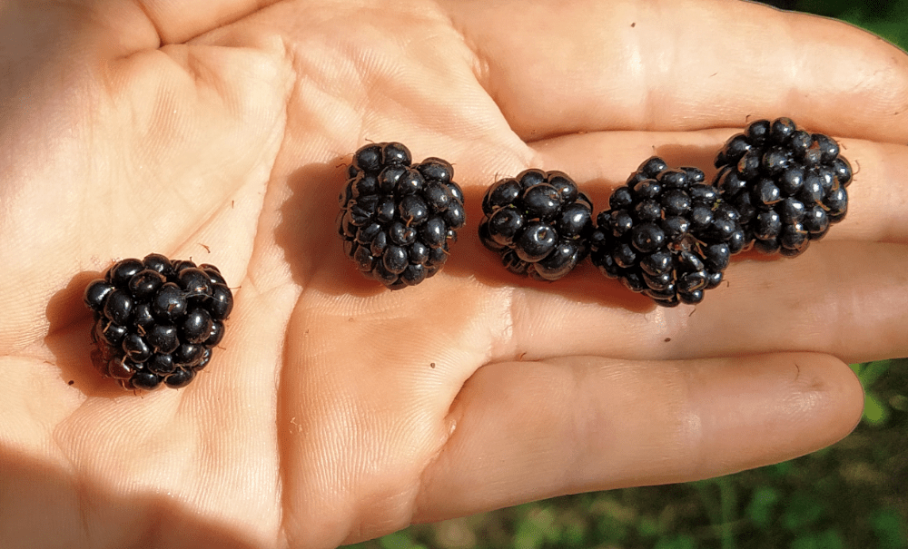 Enfin, on ne l’a pas mentionné, mais comme l’an passé, les mûres sont à profusion. D’ailleurs, elles sont si développées qu’on ne distingue pas les sauvages de la variété sans épines (qui produit normalement des fruits plus gros).