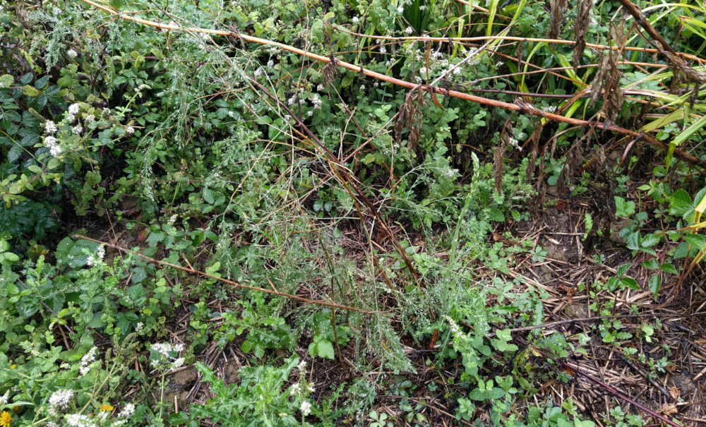 Avec toute cette pluie, la végétation reverdit. Certaines plantes reprennent vigueur et croissance. Même les arbres, en mode pré-automnale, font des mini-repousses. C’est donc le moment de débroussailler en prévision des prochaines plantations. Le focus est donné sur la zone prairie où l’on continue nos cheminements.