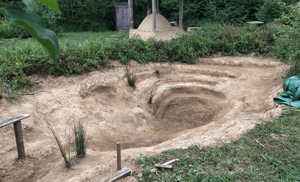 À ce stade, on ne sait toujours pas comment étanchéifier l’espace. On envisageait la bâche, la bentonite (ou argile), la végétalisation mais ces procédés nécessitent une mise en eau immédiate et un niveau constant. Mouai… de toute façon, il recommence à pleuvoir.