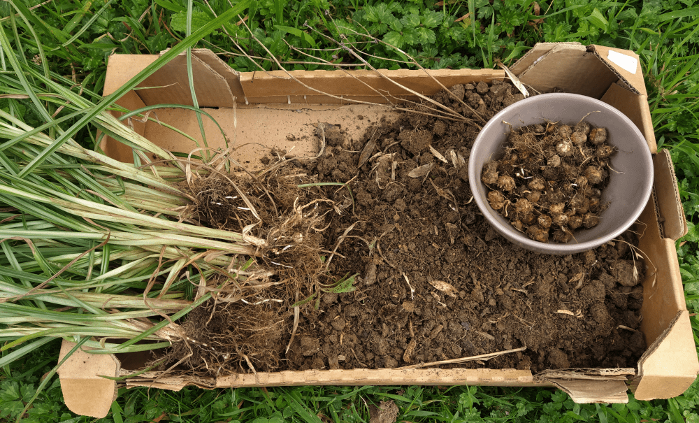 C’est que ce doit être le bon moment pour récolter le souchet; en tout cas au potager (il y a en aussi en zone sauvage). Bien entendu, on aurait pu attendre 1 mois… enfin nous oui, mais peut-être pas les campagnols…