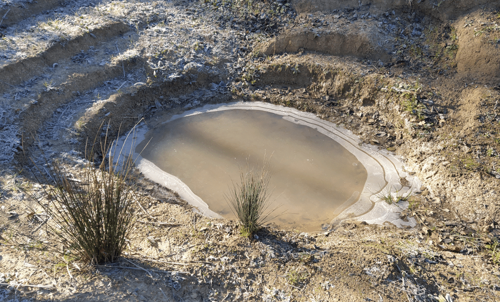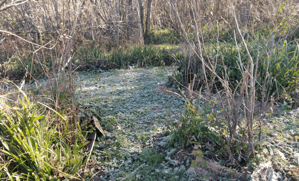 Le terrain, tel un réfrigérateur avec congélateur, semble compartimenté. Un bon quart de l’espace est délicatement givré.