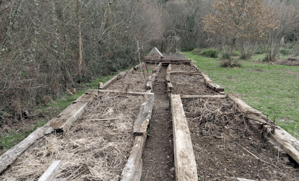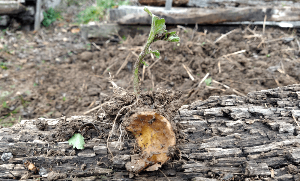 Mais avec ce froid, ça tombe super mal. On les a quand même mis sous serre dans des pots avec l’espoir qu’elles tiennent le choc. On a aussi récupéré ce qui pourrait être de l’ail rocambole (des bulbilles rescapés?), des « pousses » de raifort et des clématites.