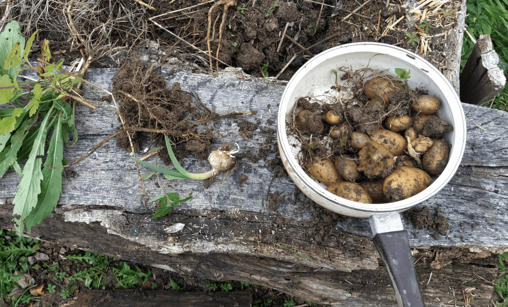 Bref! En voulant donner un ‘ti coup de jeune au potager (arggh! jeu de mot!!), on est tombé sur une vingtaine des pommes de terre prêtent à faire leur vie.