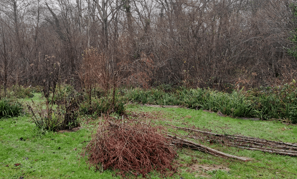 C’est délicat de parler de vie alors qu’on s’apprête à tailler sévèrement les pionniers. D’ailleurs, à chaque sujet rabattu, on ne peut s’empêcher d’émettre des KAÏÏÏÏ d’Idéfix. Mais avec ces 4 ans d’expérience, on sait que ça n’impactera pas leur vigueur (d’autant qu’une bonne partie est destinée à disparaître à long terme). Aussi, avant que le froid intense arrive, allons-y ! Pour cette mission, on est aidé (Merci Gabin!).
