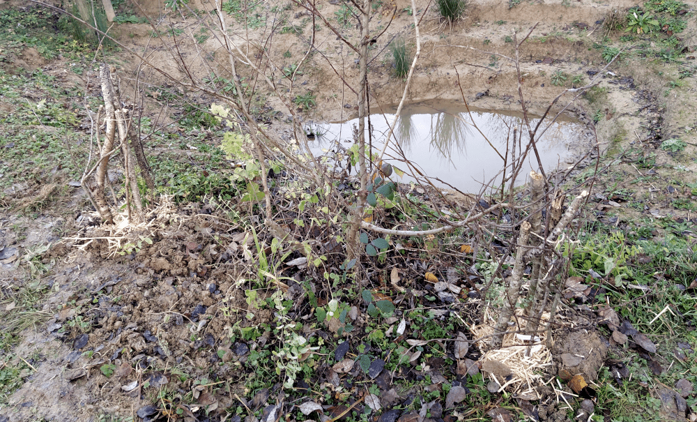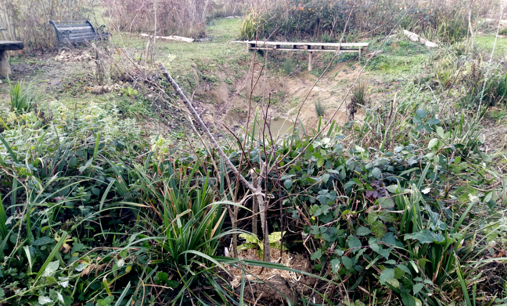 En aparté : on plante également dans cette zone le cognassier rescapé de l’aventure « verger abandonné ».