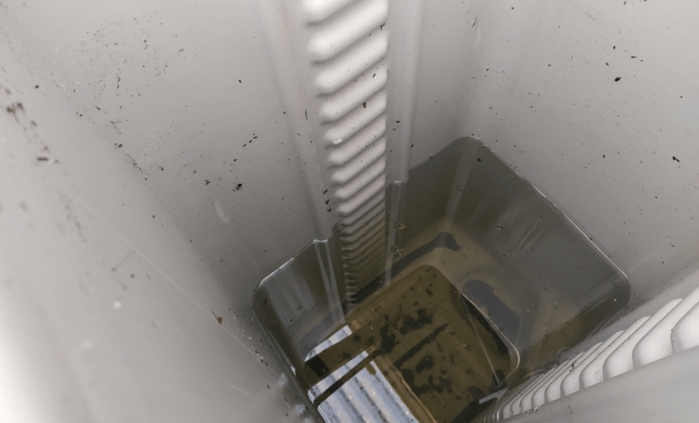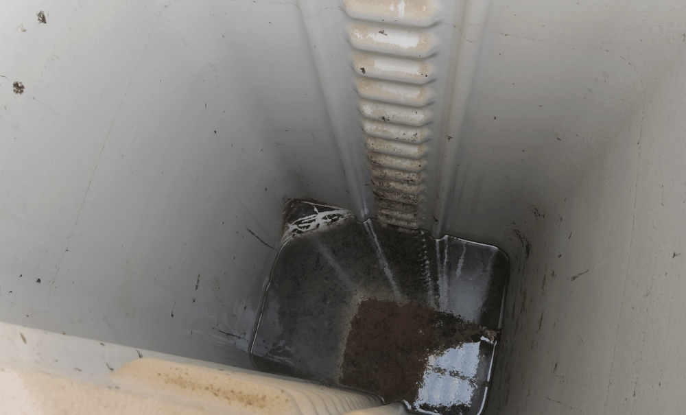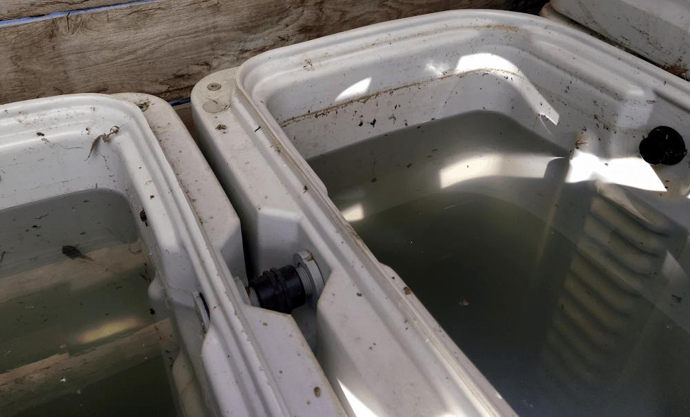 Cette fois, on teste le peroxyde d’hydrogène à 35% (20ml pour 300l). En mélangeant, on remarque que l’eau s’éclaircit avec une odeur d’amande (comme la colle Cléopâtre de notre enfance). Alors que les punaises nagent tranquillement, on vide les cuves au maximum sans pouvoir les vidanger entièrement. Une des quatre cuve est particulièrement boueuse. Pour les nettoyer, il faudrait démonter tout le système ou… ? suite au prochaine épisode.