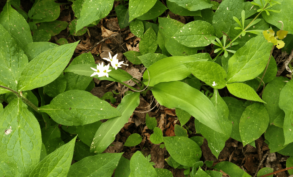 Enfin, notre plant d’ail des ours a survécu. C’était le dernier qu’on a réussi à sauvegarder des attaques de limaces et d’escargots de l’an passé. Cette année, on l’a bien caché, au milieu des consoudes tubéreuses. Malgré tout, un grignoteur l’a trouvé. Aussi, on a posé une spirale de cuivre autour et depuis, il fleurit. La classe!