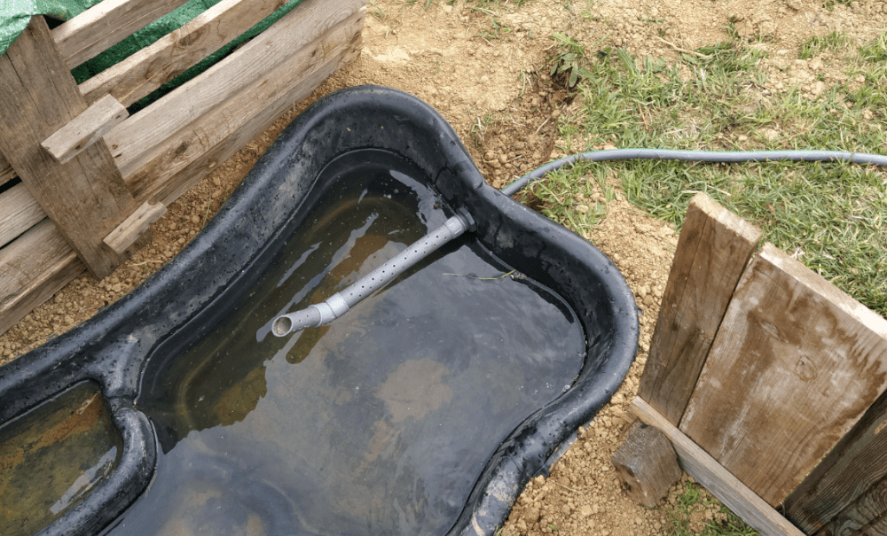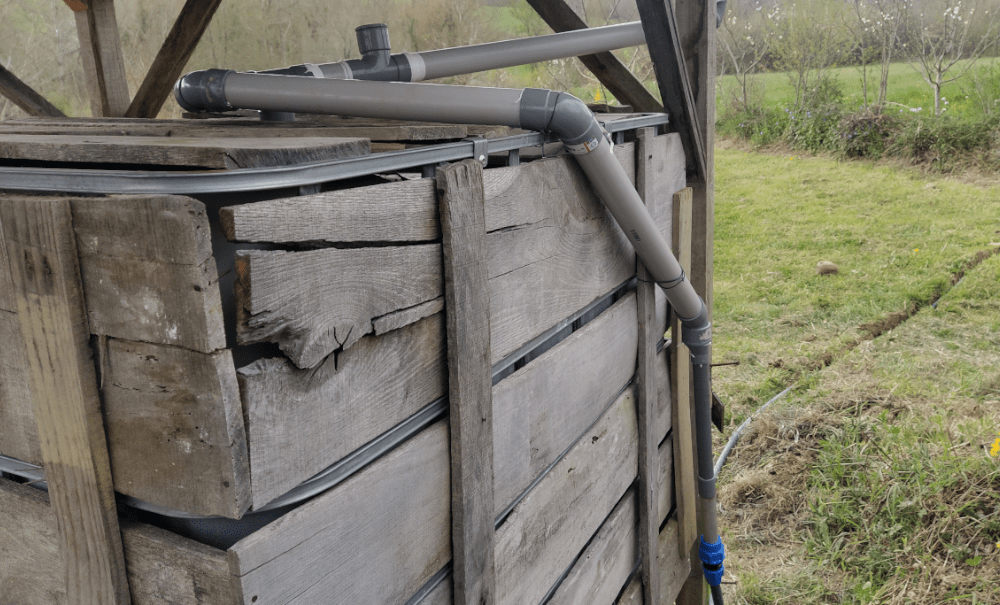Allez! Le projet nous plaît alors on se lance. On envisage de tester le système cette année, aussi notre installation doit être provisoire. C’est pourquoi on utilisera de simples tuyaux d’arrosage.