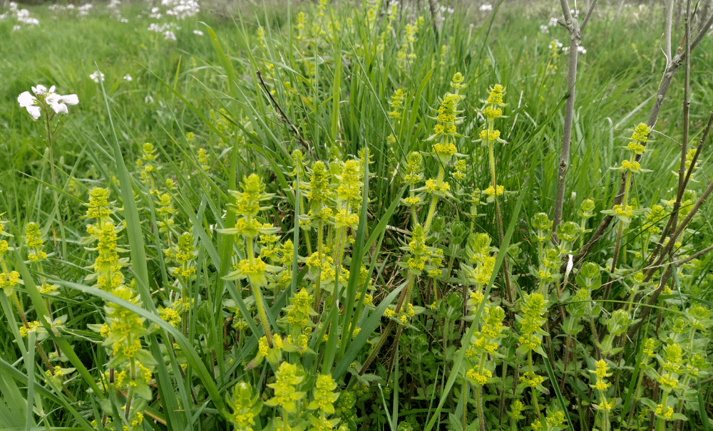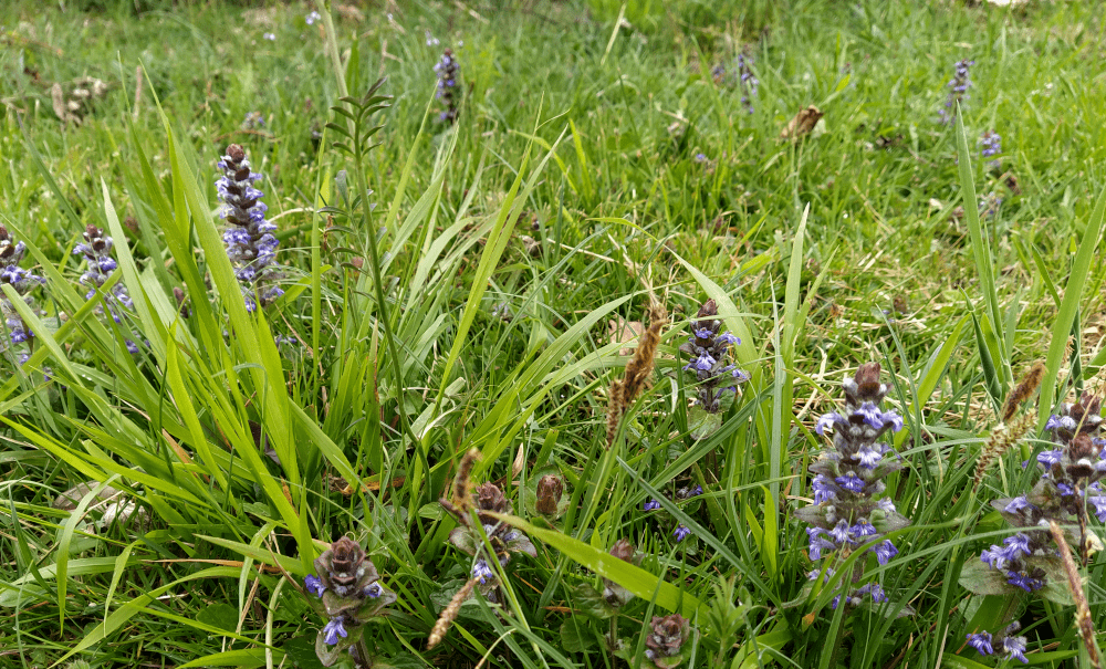 … le gaillet jaune et la bugle rampante. Toutes ces plantes indiquent un sol humifère, riche en éléments nutritifs notamment en azote. On a aussi identifié une nouvelle plante : la potentille brillante (qui complète sa cousine la potentille rampante).