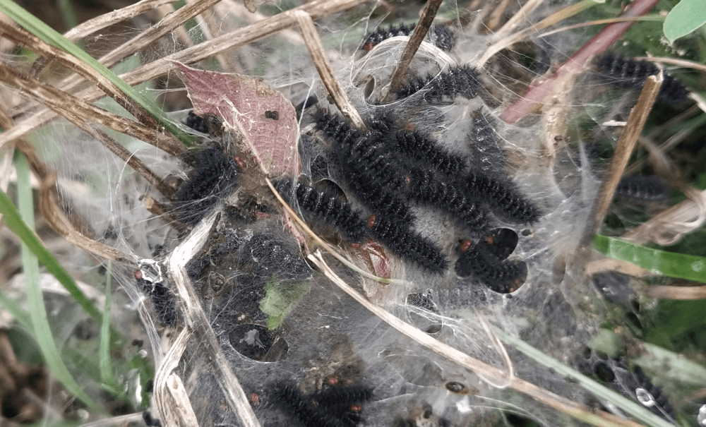 On termine cet article par une petite visite naturaliste qui débutera par nos amis les bêtes. Et là, on est heureux de présenter la Mélitée du plantain (Melitaea cinxia). On la trouve en nombre dans le labyrinthe ce qui est une bonne nouvelle vu l’abondance du plantain.