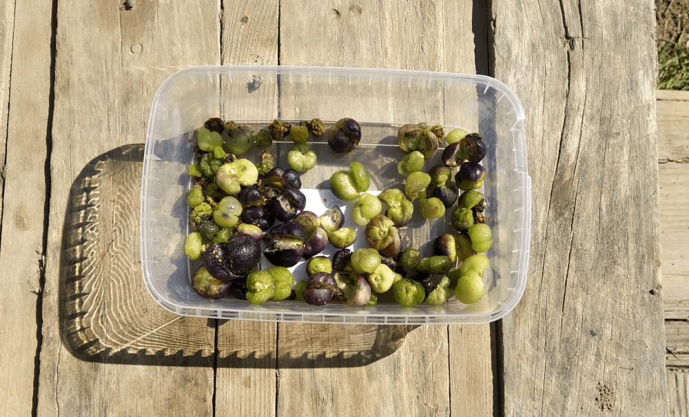 Puis, comme des physalis apparaissent, on complète l’espace en disposant une partie des tomatillos récoltées en fin d’année.